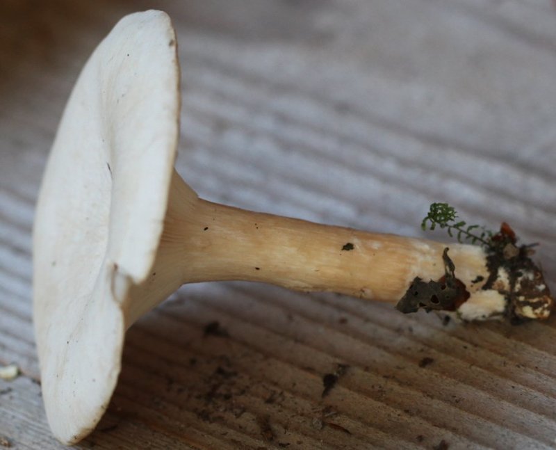 Lames décurrentes. Chapeau beige, déprimé, avec un mamelon net au fond.