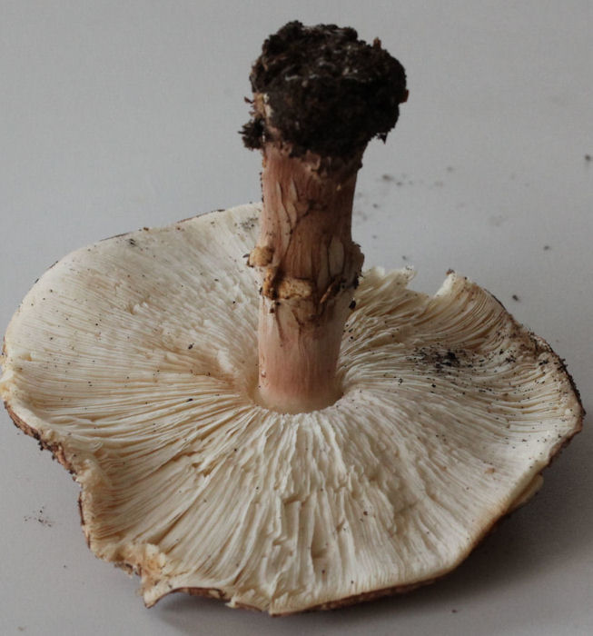 Pied avec petites écailles brunâtres. Anneau blanc.