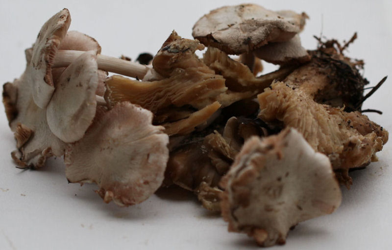 Volvariella surrecta parasitant un autre champignon.